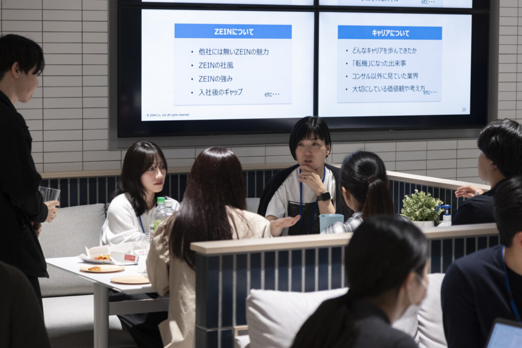 オフィスOPEN DAYとは、学生をZEINのオフィスに招き、会社や社員のリアルな雰囲気を伝えるとともに、社員との対話の時間を通じて、就活に対する不安を払拭することを目的としたイベントです。